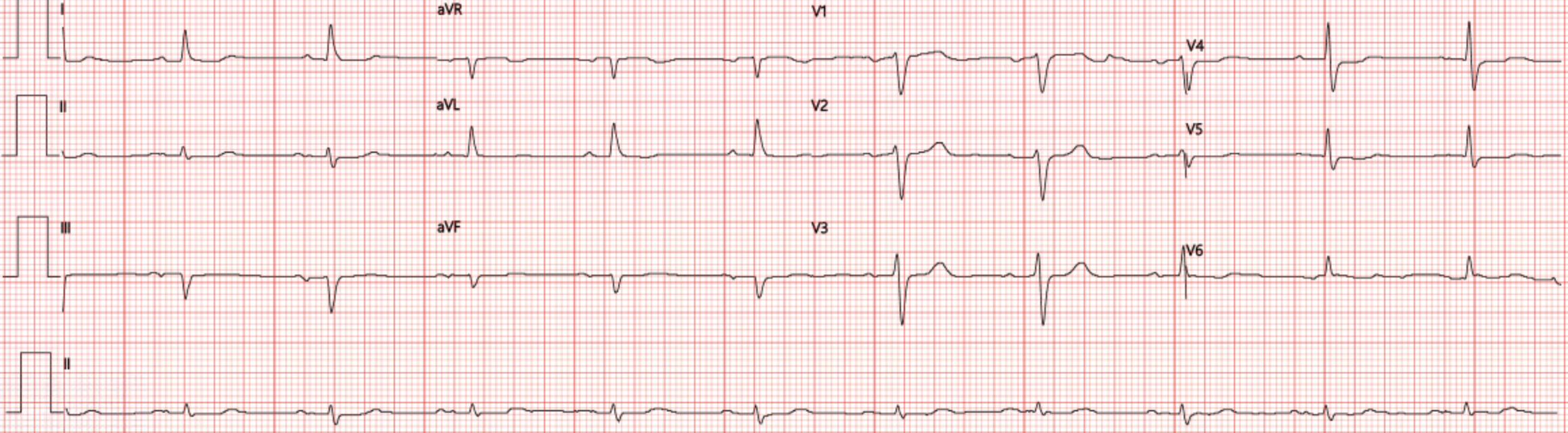 Korte beschrijving: Een meneer van 78 jaar die op de Oncologie afdeling ligt, krijgt ’s nachts pijn op de borst in de vorm van een band en is bekend met een recente NSTEMI.