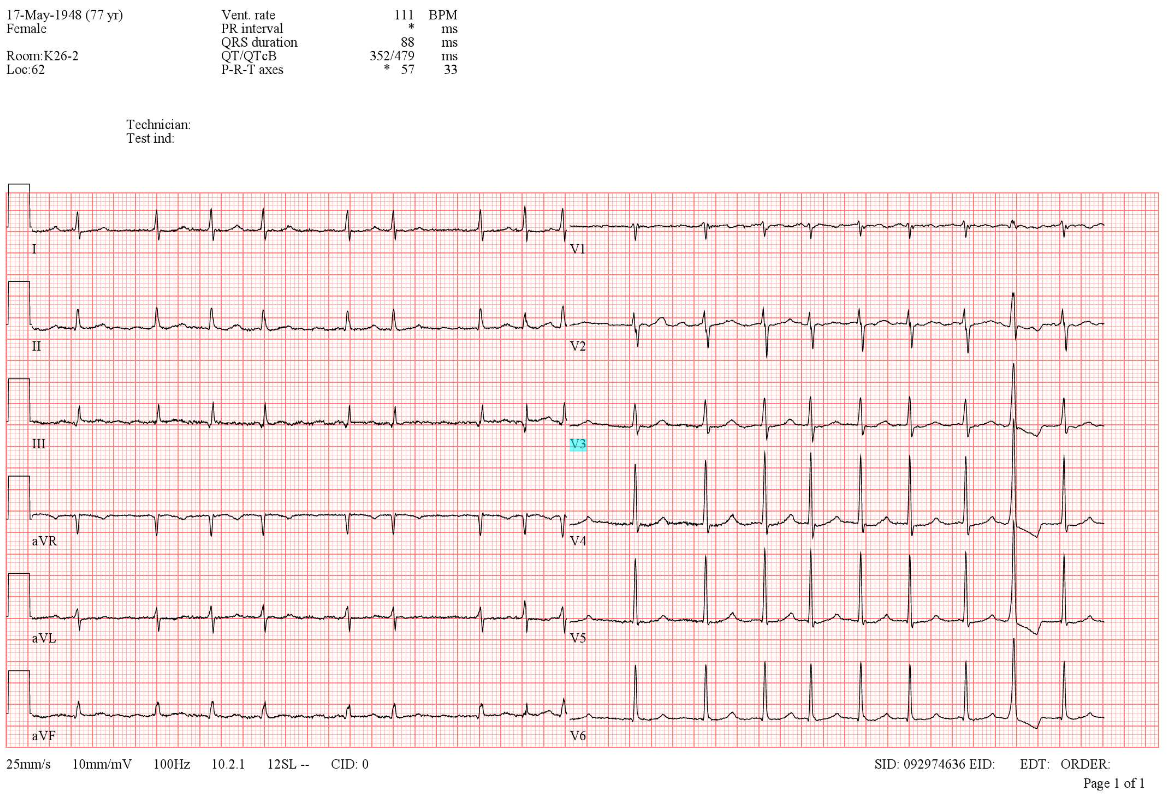 – Tachycardie 111/min